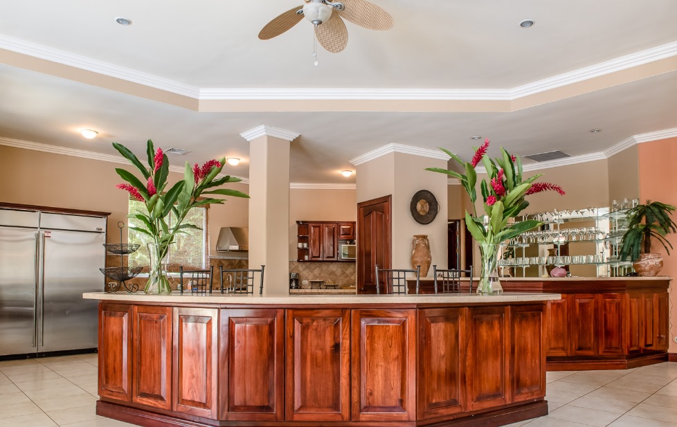 Large open planned kitchen with 2 serving bars and 1 wet bar
